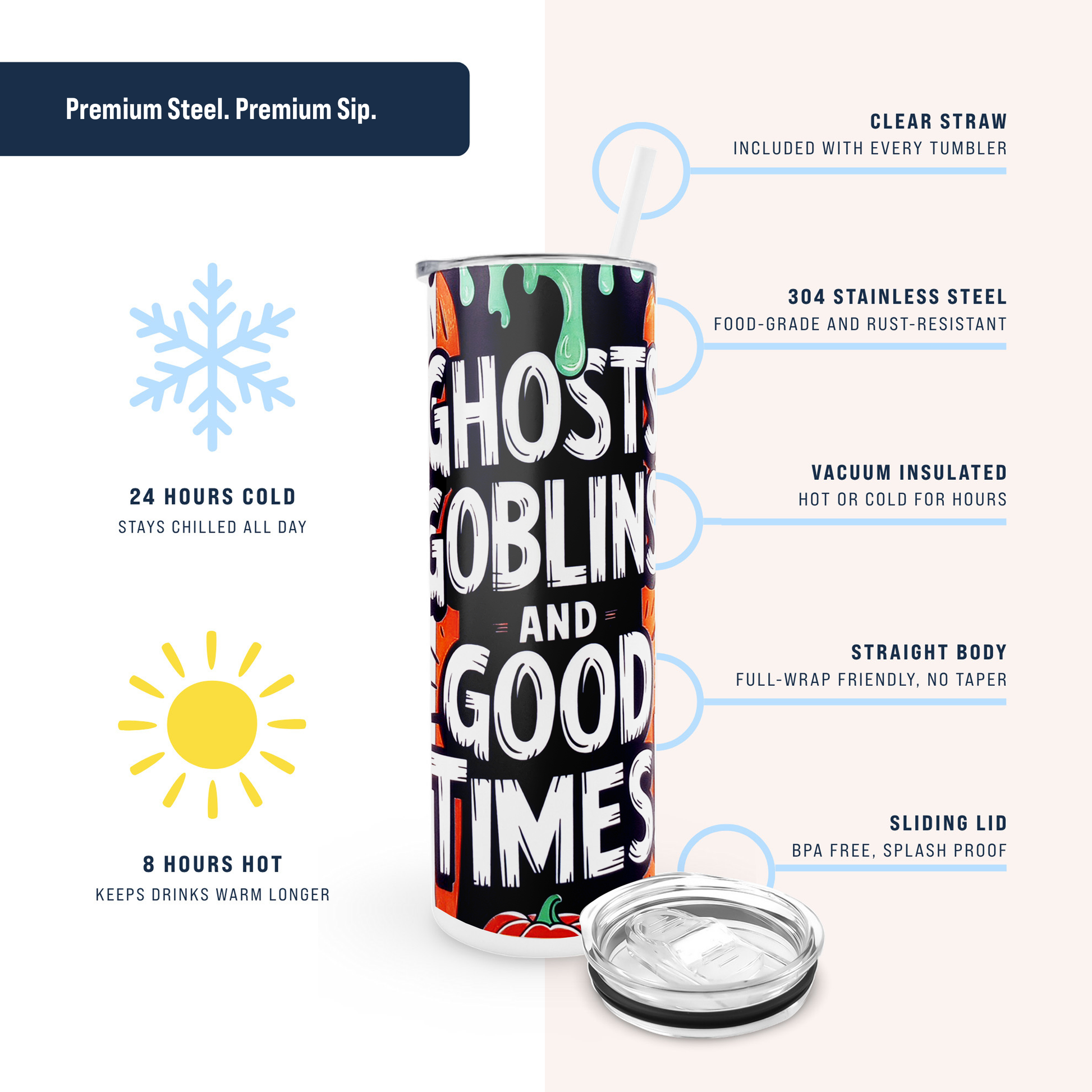Halloween 20oz Glow in the Dark Tumbler - Ghosts Goblins and Good Times