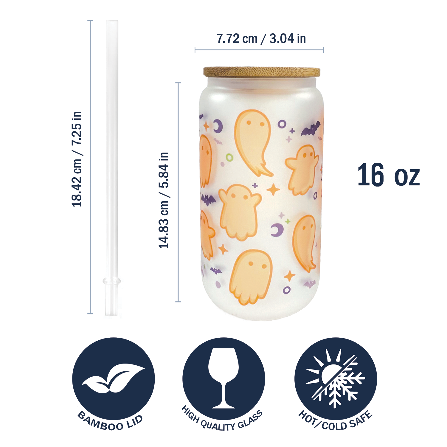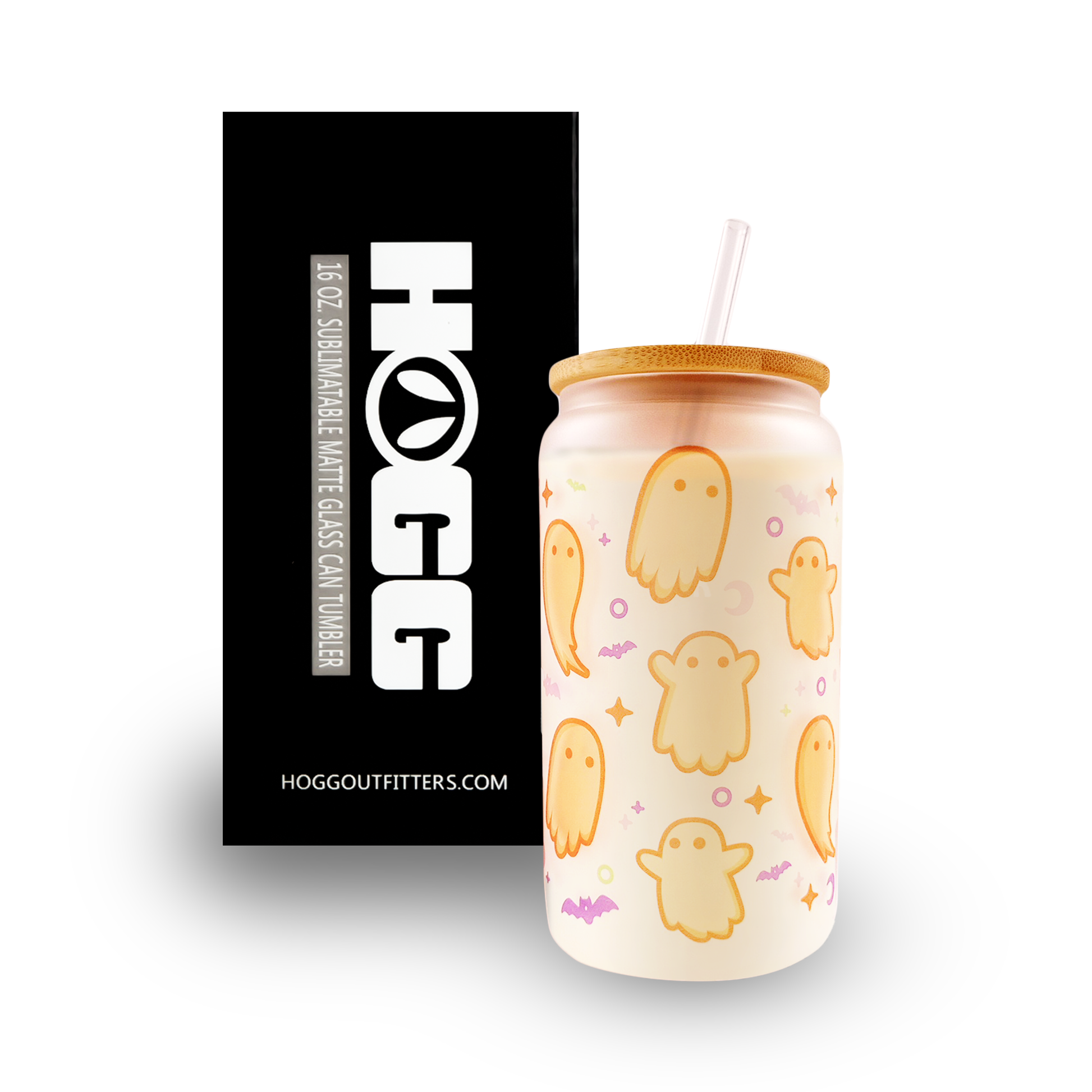 16oz Matte Glass Can - Halloween Ghosts Design